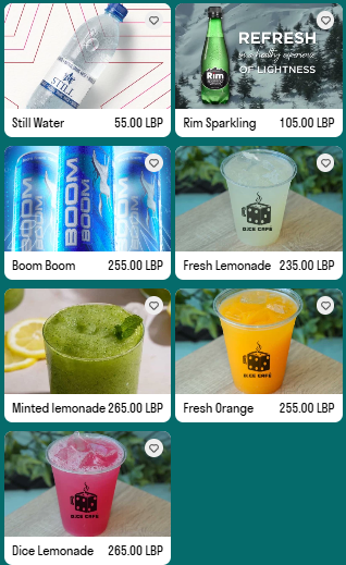 - Frappés: Choose from enticing options like the Dice Frappé and White Mocha, ranging from LBP 375 to LBP 395.